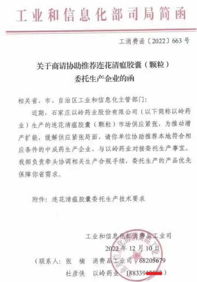 由于连花清瘟太受欢迎,工信部在紧急要求各地协助生产。