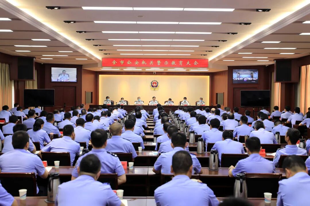 7月1日上午,市公安局以专题党课形式召开全市公安机关警示教育大会,集中观看市公安局警示教育片《违纪之鉴4—不该蒙尘的警徽》,引导全警深刻汲取违纪违法典型案例惨痛教训,不忘初心使命,敢于直面问题、勇于自我革命,坚持不懈把全面从严管党治警引向深入。副市长、市公安局局长谢继步出席会议并讲话,市公安局党委副书记、常务副局长吴柏林主持会议,在家市局党委成员和市纪委监委第十八派驻纪检监察组组长出席会议。