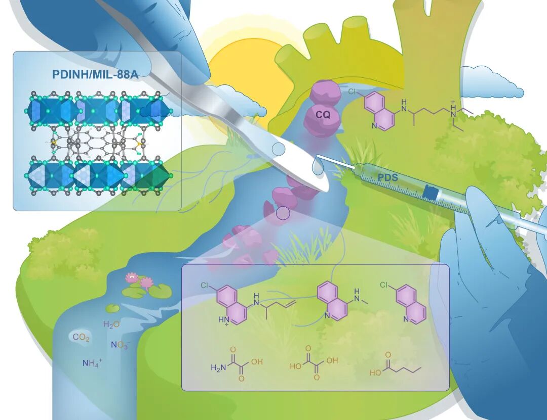 2. 在LED可见光照射下实现了PDINH/MIL-88A(Fe)光催化活化过二硫酸盐降解磷酸氯喹(CQ);