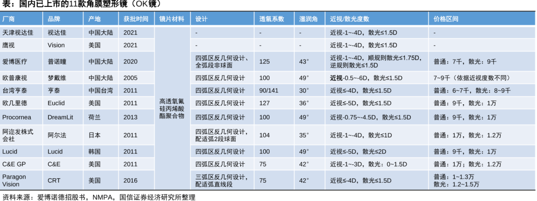 国内有11家生产企业获得了OK镜产品注册证共12张。