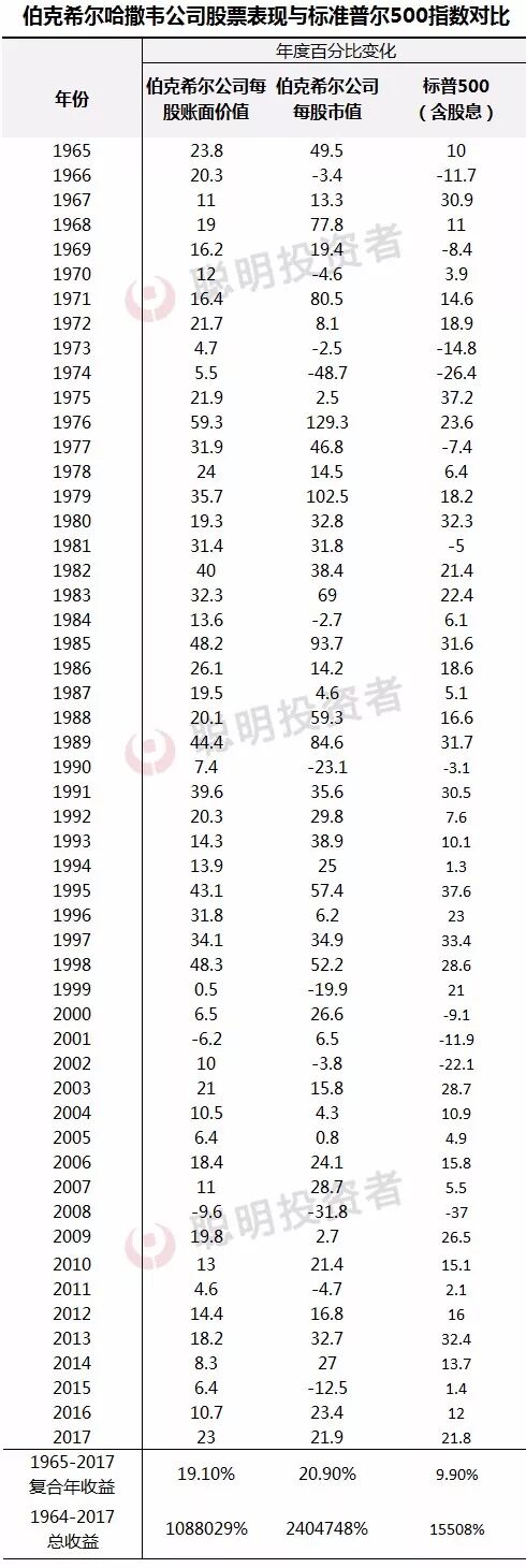 伯克希尔最重视的是每股盈利能力的提升,这个衡量指标也是我的长期搭档查理芒格和我共同关注所在,希望你们也是。以下是我们2017年的得分卡。