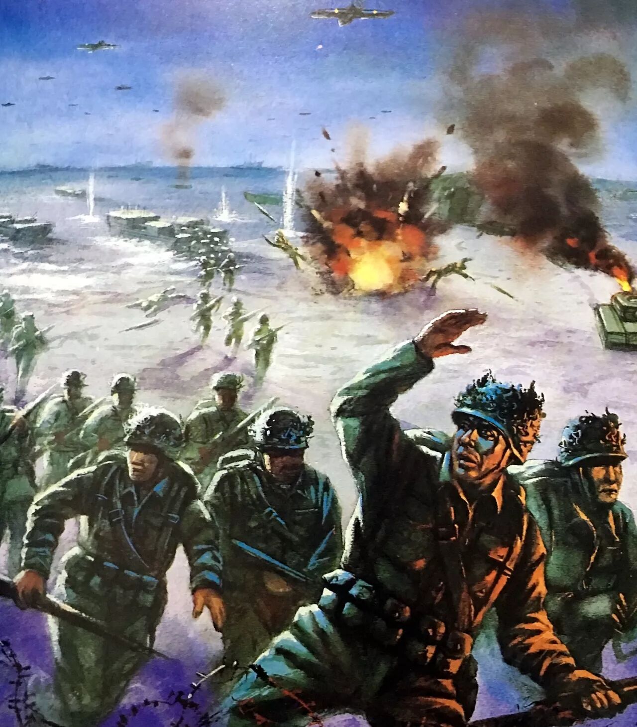 战争已经打了好几年,最后,英美两国决定派一支军队,从法国的诺曼底登陆。可是希特勒早在法国沿海布下天罗地网,每隔一小段距离就设一座炮台,水中布满水雷,飞机随时待命出击,别说是人了,就连一只鸟或一条鱼也越不过去。