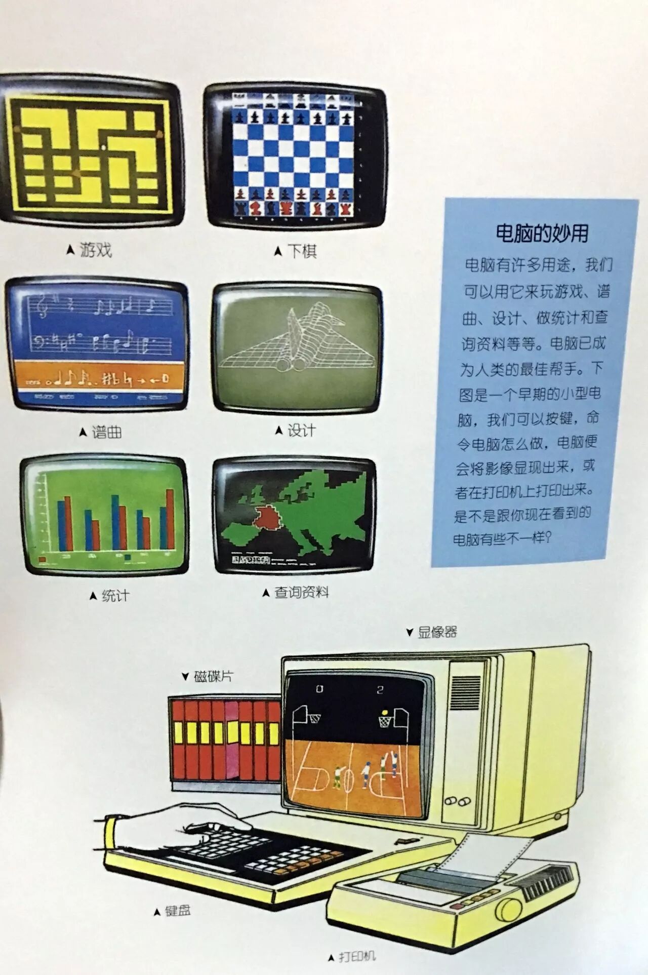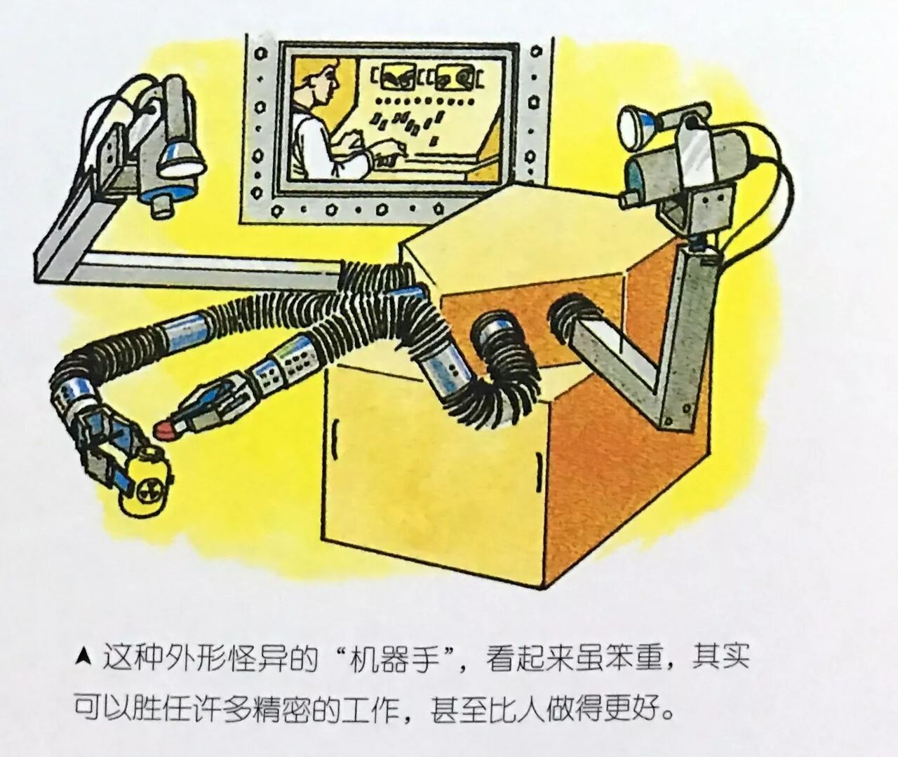 科学家还发明了电脑和机器人。我就知道,现在有很多小孩都讨厌算算术,有些懒惰的孩子还会偷用爸爸的计算器来计算习题呢!不过对大人来说,电脑却是工作上的好伙伴。他们在办公室利用电脑来处理事情,也许再过不了多久,你的爸爸妈妈就可以在家里上班了。当需要资料时,只要按下电脑按钮,就会立刻印出资料,和在公司里一样方便;必须讨论时,也可以利用电脑召开会议,就像面对面谈话一样。到那时,你或许也可以不用到学校去上课,电脑会教给你许多知识。许多小孩一定感到很高兴,如果迟到了,或忘记写作业,都不会被老师罚站。甚至通过电脑,还可以在家里买东西,在家里看医生,在家里存款,提款,仿佛银行就设在你家里一样。