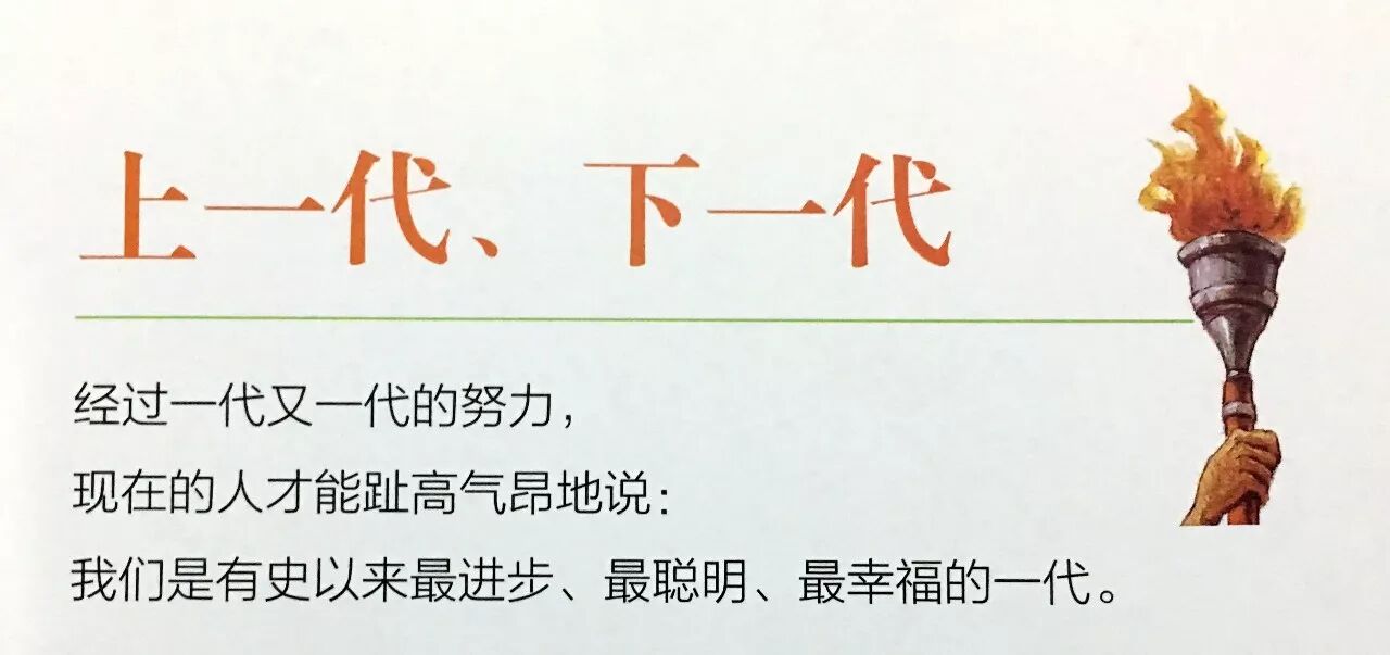 人们总以为,自己所处的时代是历史上最重要、最伟大的。以前各代的人绝对没有看过像现在所发生过的这么多神奇的事情。从前都是落伍的,只有现代才是进步的,甚至你还会觉得,连自己的父母都不够“进步”哩!难怪今天我们时常听到有人会说,他和父母之间有了“代沟”。代沟的意思你懂吧?它是指两代之间在想法上有了差距,像沟渠一般难以跨越。有些小孩,当父母不赞同他的想法时,他也会说父母与他有了代沟。