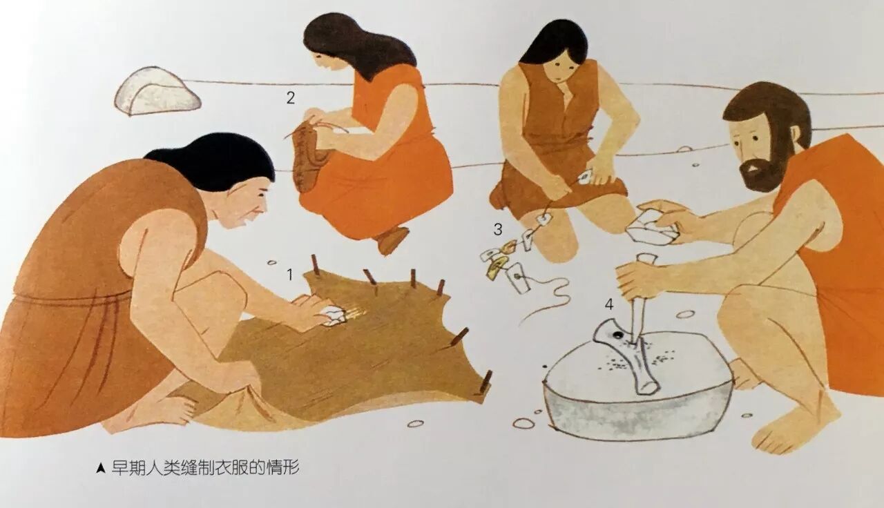 当人类还过着穴居的生活时,根本不知道什么是服装,更不知道什么叫好看还是不好看。人们夏天多半是赤裸的,或仅以树叶遮身,冬天则披上兽皮御寒。一直到了大约五十万年前,原始人才懂得用兽骨当针,以动物的韧带为线,缝制兽皮衣服,这时候他们也会把野兽的角、牙齿或鱼骨串成项链和头饰。不过,原始人戴这些东西并不是为了好看,而是在炫耀自己狩猎的成果。