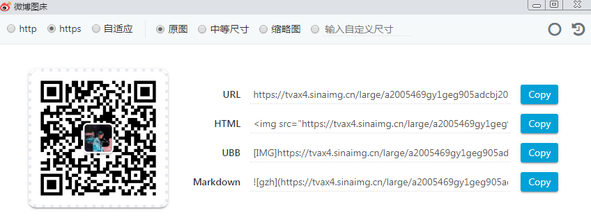 微博图床,支持选择、拖拽、粘贴、网页右键上传图片,并生成图片地址,支持浏览和删除历史记录,支持同步上传记录 上传到图片到微博,同步到微相册,并生成外链。