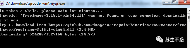 imageio 目录还有ffmpeg目录,里面有个文件 ffmpeg-win32-v3.2.4.exe ,也可以从这里下载 https://github.com/imageio/imageio-binaries/raw/master/ffmpeg/ffmpeg-win32-v3.2.4.exe ,运行myqr.exe后在本地生成动态GIF图 lovelove_qrcode.gif。