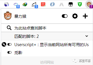 说了Chrome扩展,那必须提到油猴神器,之前也分享过Chrome 浏览器扩展神器油猴 ,在公众号后台回复 油猴 获取crx文件,安装后就可以在https://greasyfork.org/zh-CN 搜索安装你要的脚本了,如果想更方便点可以安装暴力猴扩展Chrome 浏览器扩展神器暴力猴 ,方便搜索当前网站的脚本。