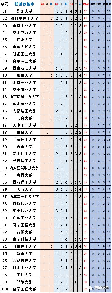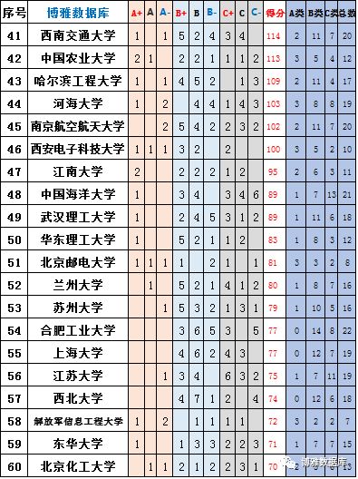 A+虽然仅3个,但A类学科16个排名第三,上榜学科30个排名第二,综合排名第四。