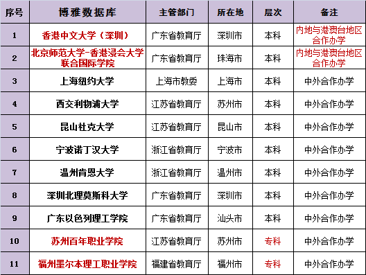 专科大学2所:苏州百年职业学院、福州墨尔本理工职业学院。