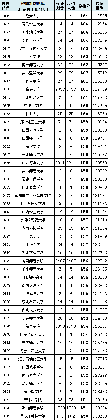 2019年广东省本科批次最低分数线上考生投档情况