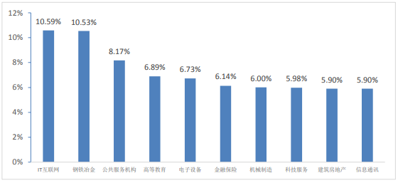 位就业的毕业生比例为 21.28%。主要分布在 IT 互联网、钢铁冶金、公共服务机构、