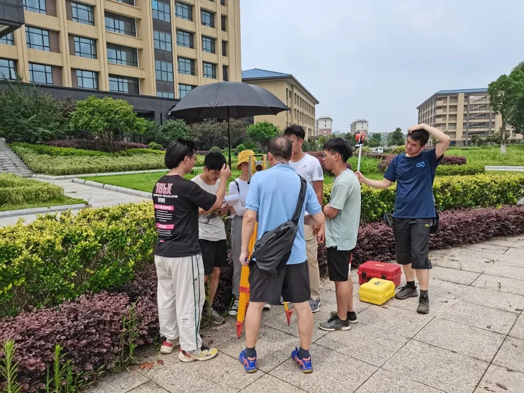 本次综合实习主要包含无人机数据获取与影像处理、GNSS测量、DOM调绘、全站仪测量计算与绘图等,实习内容具体丰富。全体同学克服了天气炎热、蚊虫叮咬、道路泥泞等诸多困难,在陈智勇、李爱善、付建红、刘敏、张丰、孙朝辉、王玥、艾明耀和赵鹏程等9位老师的全程指导下,认真学习相关仪器的操作。不论是无人机操控,大范围的野外调绘,还是长时间高温环境下的碎部测量,同学们都努力开展,日夜“开工”,获取了大量图像和数据资料。2020级本科生辅导员董黎,本科生兼职辅导员陈雨婷全程随队。