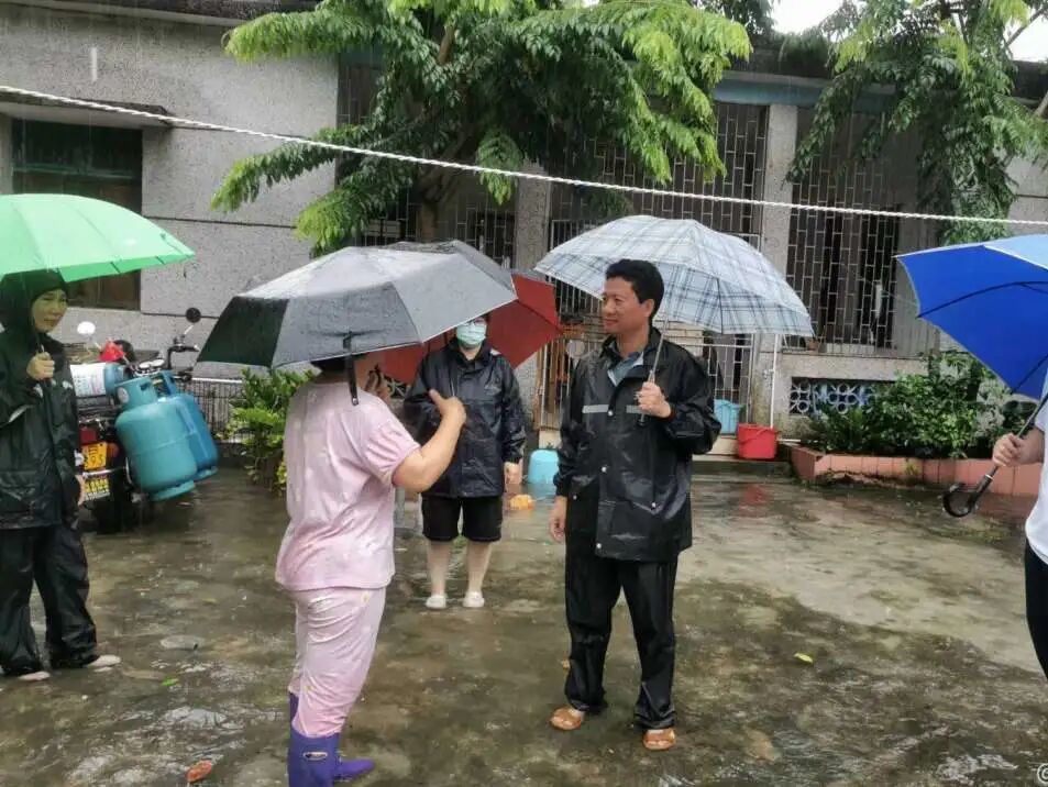 ▲7月2日,市政府副市长、区委书记黄兴武到妙林村、南海社区等地指导防台防汛工作。区政府副区长麦永学陪同。