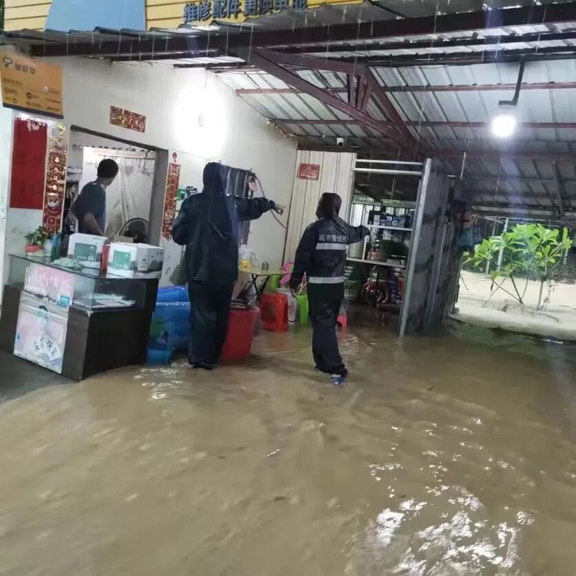 ▲市综合行政执法局天涯分局组织力量转移居住在低洼地带的群众。