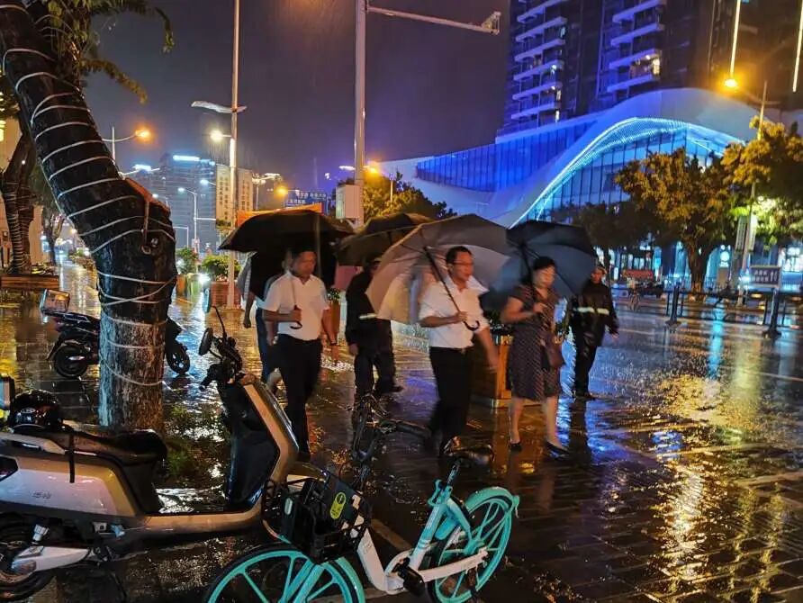 ▲7月2日,区委副书记、区长陈潇到南海社区等地指导防台防汛工作。