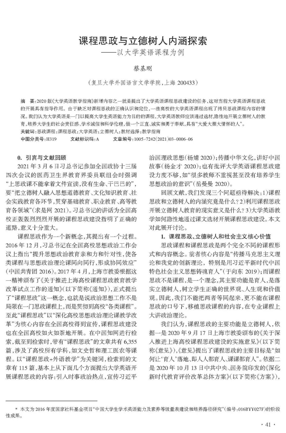 蔡基刚 | 课程思政视角下的大学英语通识教育四个转向:《大学英语教学指南》(2020版)内涵探索