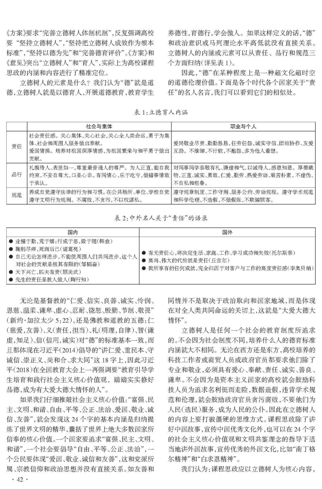立德树人是任何一个社会的教育制度所追求的。不会因为社会制度不同,培养什么人的德育标准内涵就大不相同。无论在西方还是东方,高校培养的科技工作者或商贸人员或政府官员都要求他们除了专业和敬业,必须具有爱心、奉献、责任、诚实、善良、谦卑。不会因为是资本主义国家的高校就会鼓励科技人员为追求名利铤而走险,数据造假,违背学术规范和伦理,就会鼓励政府官员贪污腐败,不要他们为人民(选民)服务,成为人民的公仆。因此在立德树人的内容上要打破僵硬的思维方式。课程思政除了讲好中国故事,宣传中国优秀文化外,也可以在24个字的社会主义核心价值观和文明共鉴理念的指导下适当地讲外国故事,宣传优秀的外国文化。
