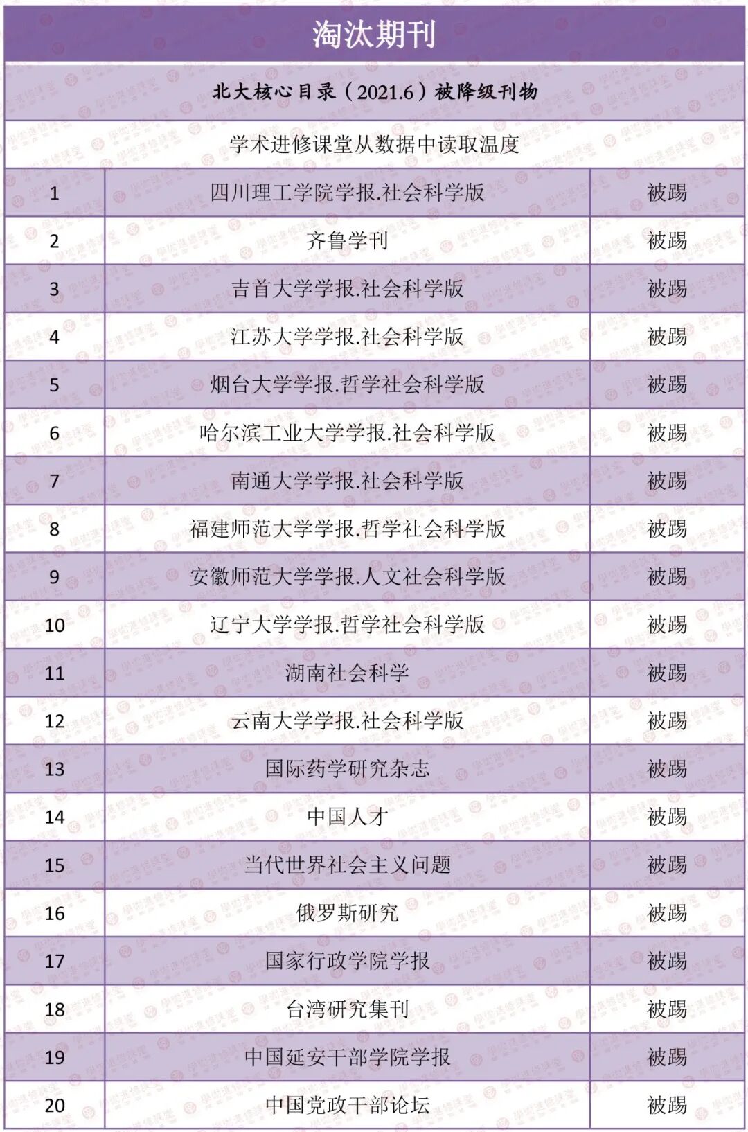 目录整体变动不大,被踢不意味着期刊质量一定不好,晋升的刊物会有一定的发展空间,趁着过渡期有需要发核心的作者可以多考虑下新升级的刊物。
