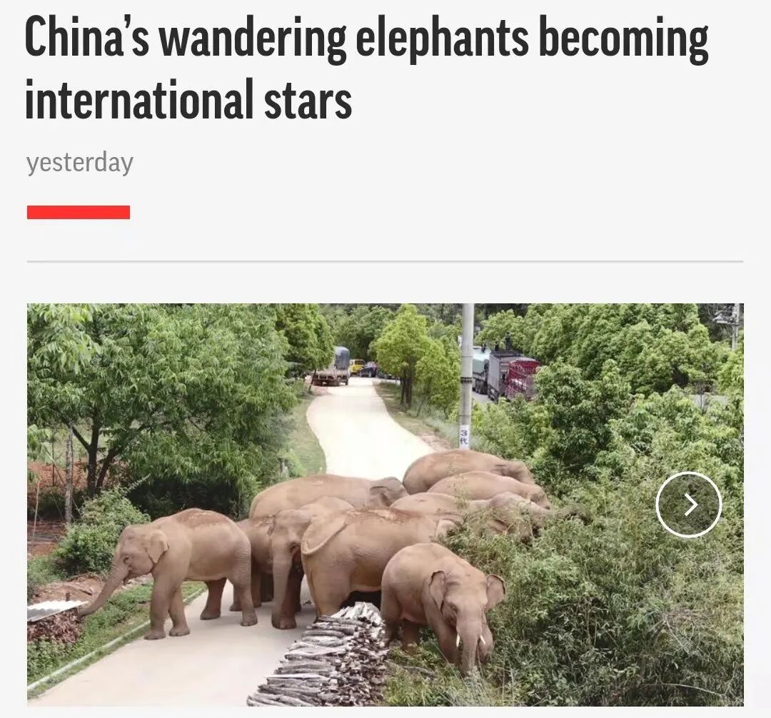 大象突如其来的暴走,中国人很关注,外国人也很关注。美联社就报道了这群大象,把它们称作国际明星。