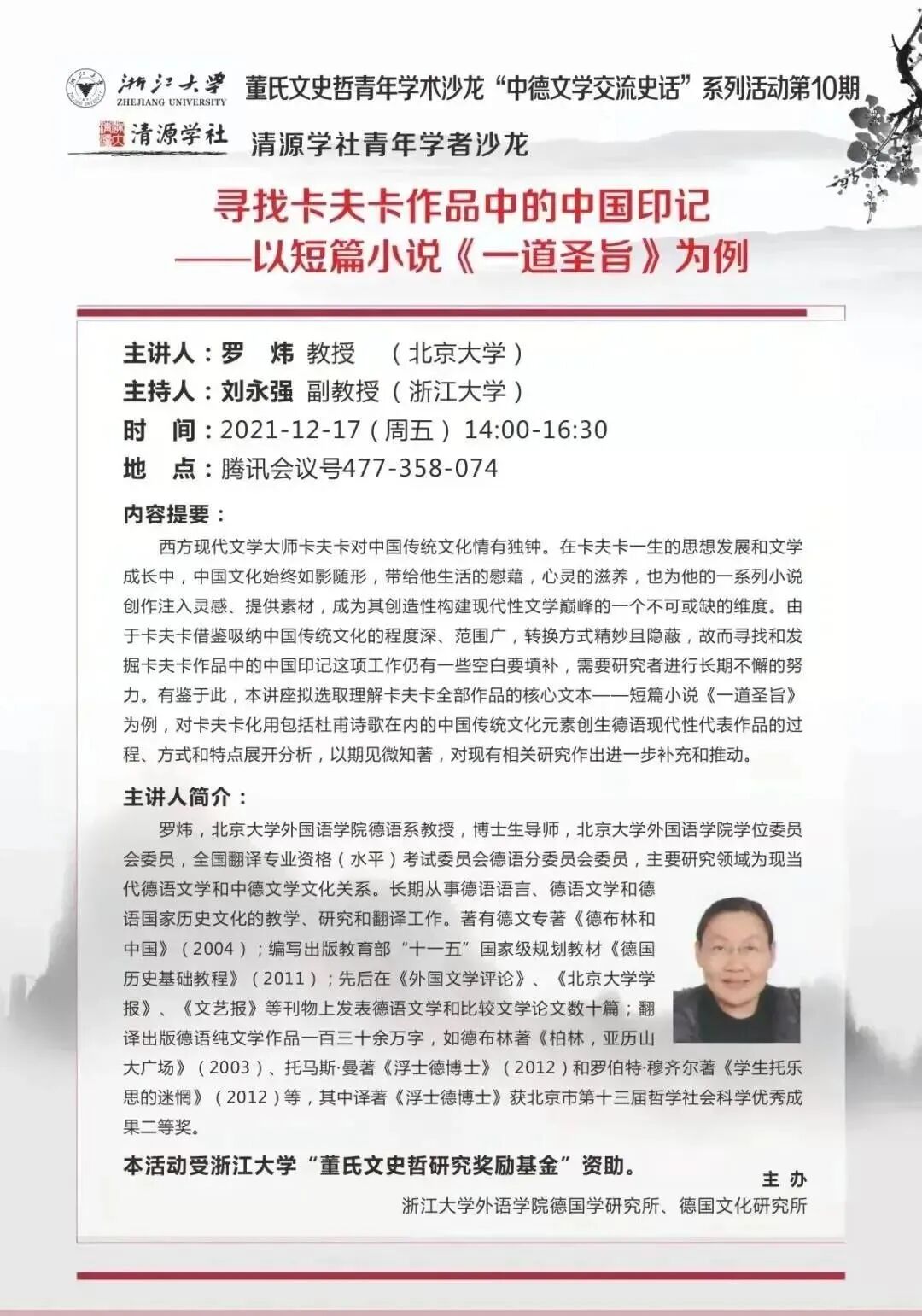 43.讲座名称:寻找卡夫卡作品中的中国印记——以短篇小说《一道圣旨》为例