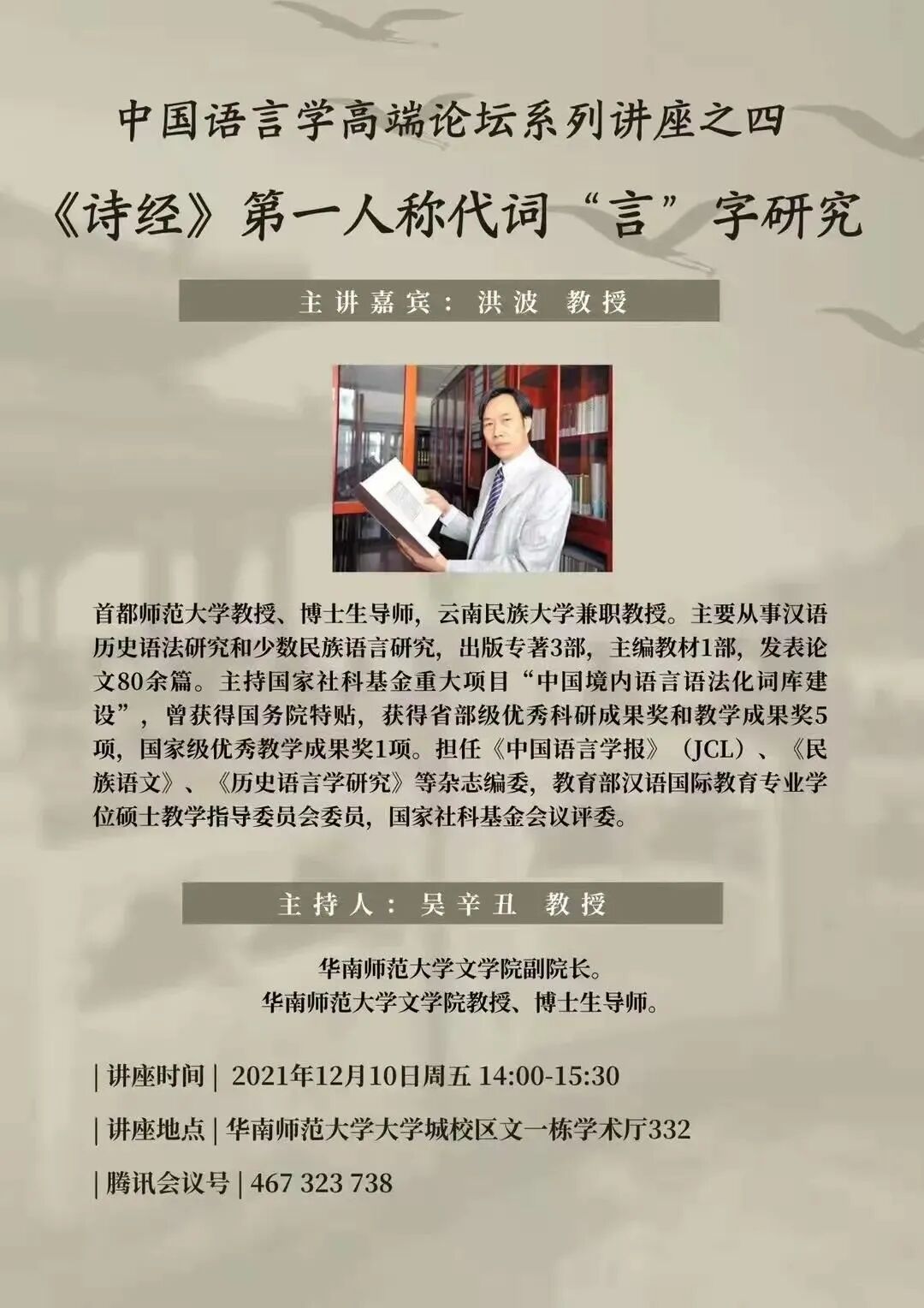 主讲人: 熊沐清教授、尚必武教授、戴从容教授等