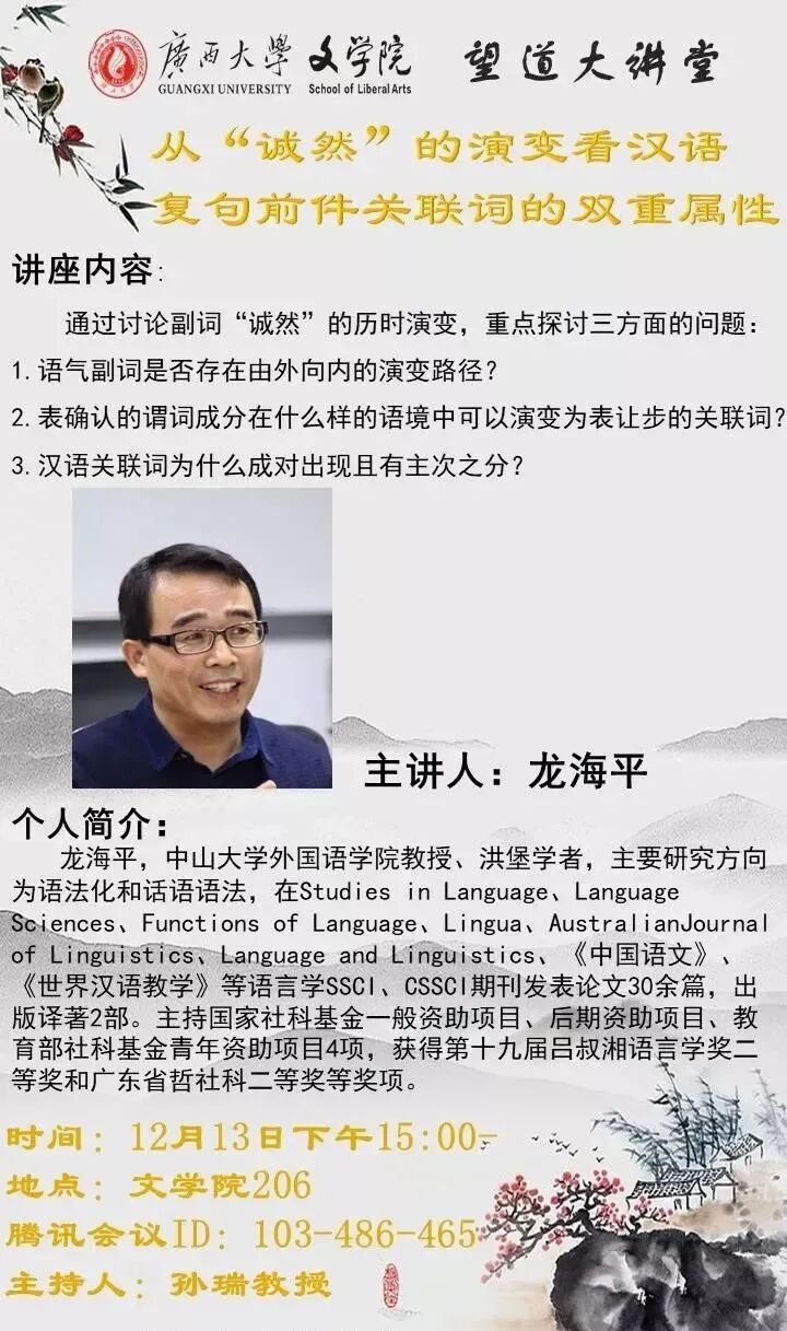34.讲座名称:从 “诚然” 的演变看汉语复句前件关联词的双重属生