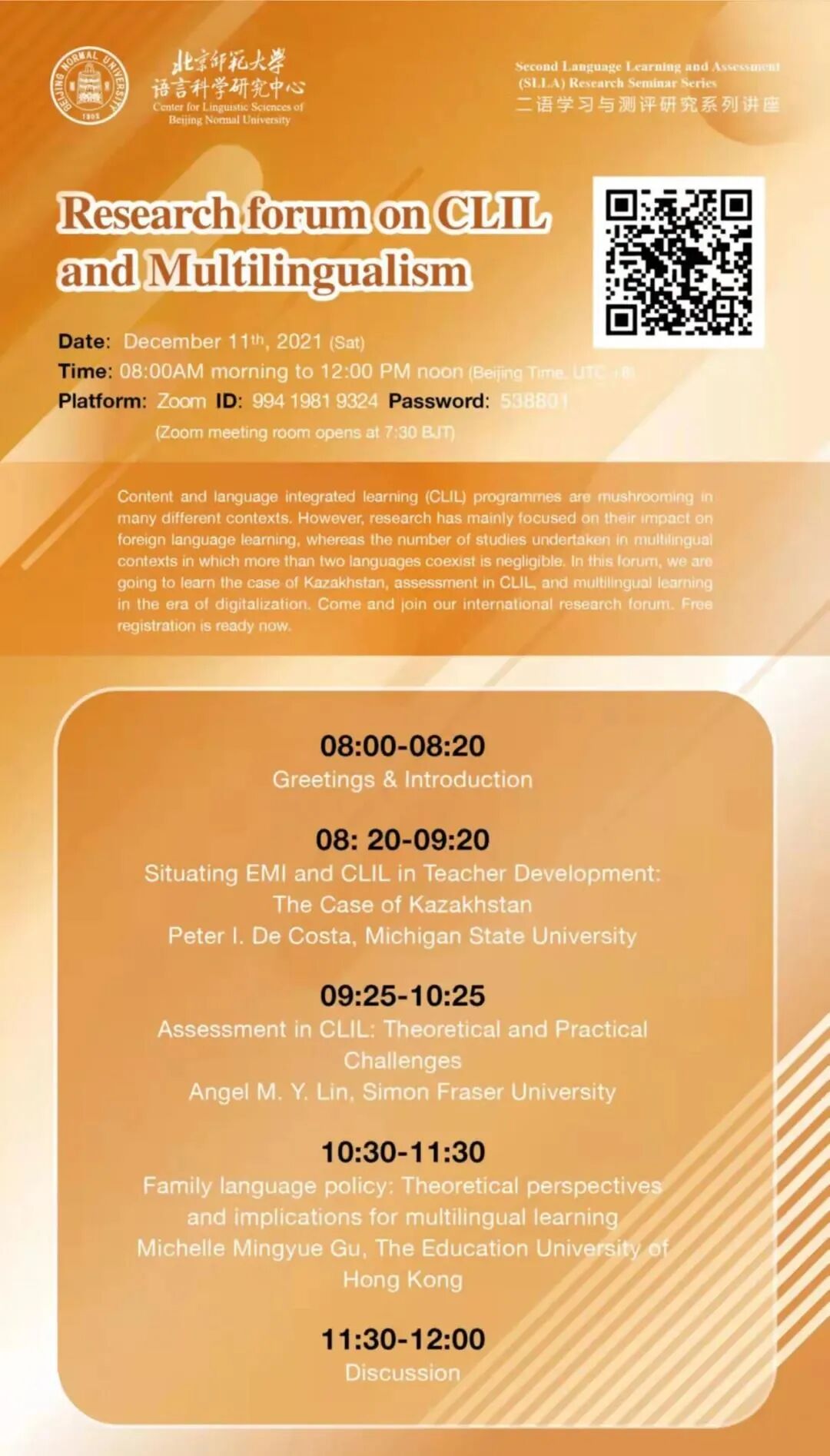 13.讲座名称:Research forum on CLIL and Multilingualism