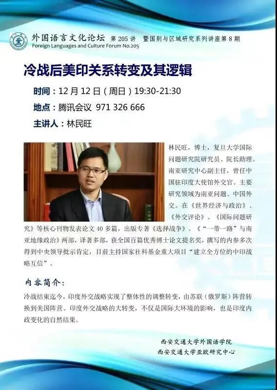 30.讲座名称:冷战后美印关系转变及其逻辑