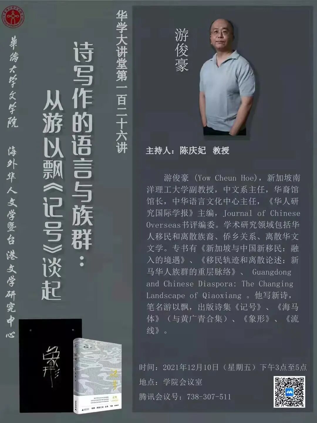 8.讲座名称:诗写作的语言与族群:从游以飘《记号》谈起
