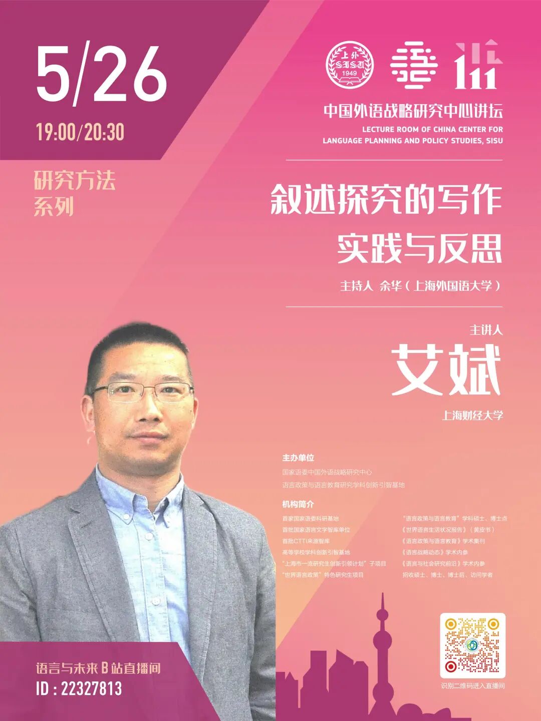 主讲人:艾斌(上海财经大学) 主持人:余华(上海外国语大学) 时 间:5月26日 19:00~20:30 |