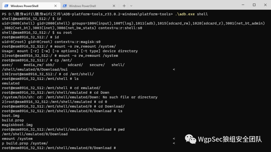 开机之后,在adb命令中输入adb shell su获取root权限,弹窗出来的shell申请root权限一定要单击总是确定。接下就是重点操作,我们要去修改配置文件,不然检测到没有网络5分钟就会自动重启,部分随身WiFi设备切卡也是存在需要输入密码的。使用以下命令操作