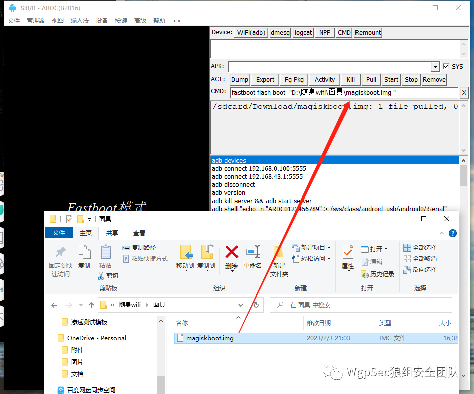 然后使用命令重启到fastboot模式,刷进去我们修补好的boot文件。