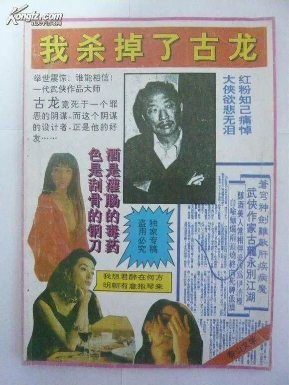 一次,好友林清玄去看他。古大侠郑重其事地告诉林道长:“我要告诉你一个重要的事情,酒不是好东西。”随后又说,我现在跟和尚没啥两样,酒色财气,声色犬马都玩不动了,活得像白开水一样,淡出个鸟来。1985年9月,古大侠再也忍受不了和尚一样的生活了。于是,带上弟子丁情,再次跑到吟松阁,跟现场的小姐们一一碰杯,在烈酒的浇灌下,在美女的包围中,倒下了。在病床上,他拉着守在他身边的最后一位美女于秀玲,说了最后一句话:“为毛我之前的那些女朋友没来看我呢?”一脸懵逼的于秀玲还没来得及回答,他就闪电一样驾鹤西归了,时年48岁。倪匡等大侠为其治丧,生前那帮兄弟们凑了48瓶上好的XO,放在古大侠的棺材里。下葬前,倪大侠觉得意思不到,于是掀开棺材板,每瓶酒都打开喝两口,陪古大侠再痛饮一场,他担心古龙死后,有盗墓贼前来偷盗这些名贵的酒。从此江湖上再也没有古大侠,但是,他的情史在他的小说和改编的影视剧中经久不衰。曾经让古大侠很遗憾的事是,《天涯明月刀》在连载中,被读者骂得不得不撤下。2012年,台湾竹联帮大佬吴敦,因为投资林志玲参演的《刺陵》亏得裤子都差点么穿的了,就是靠着古龙的《天涯明月刀》成功东山再起,还捧红了竹联帮教父陈启礼的儿子陈楚河。万小刀往期精选文章: