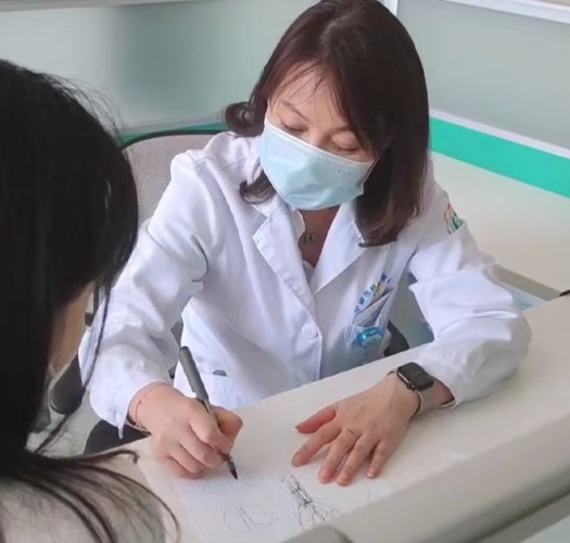 陈丽萍给患者讲解病情。