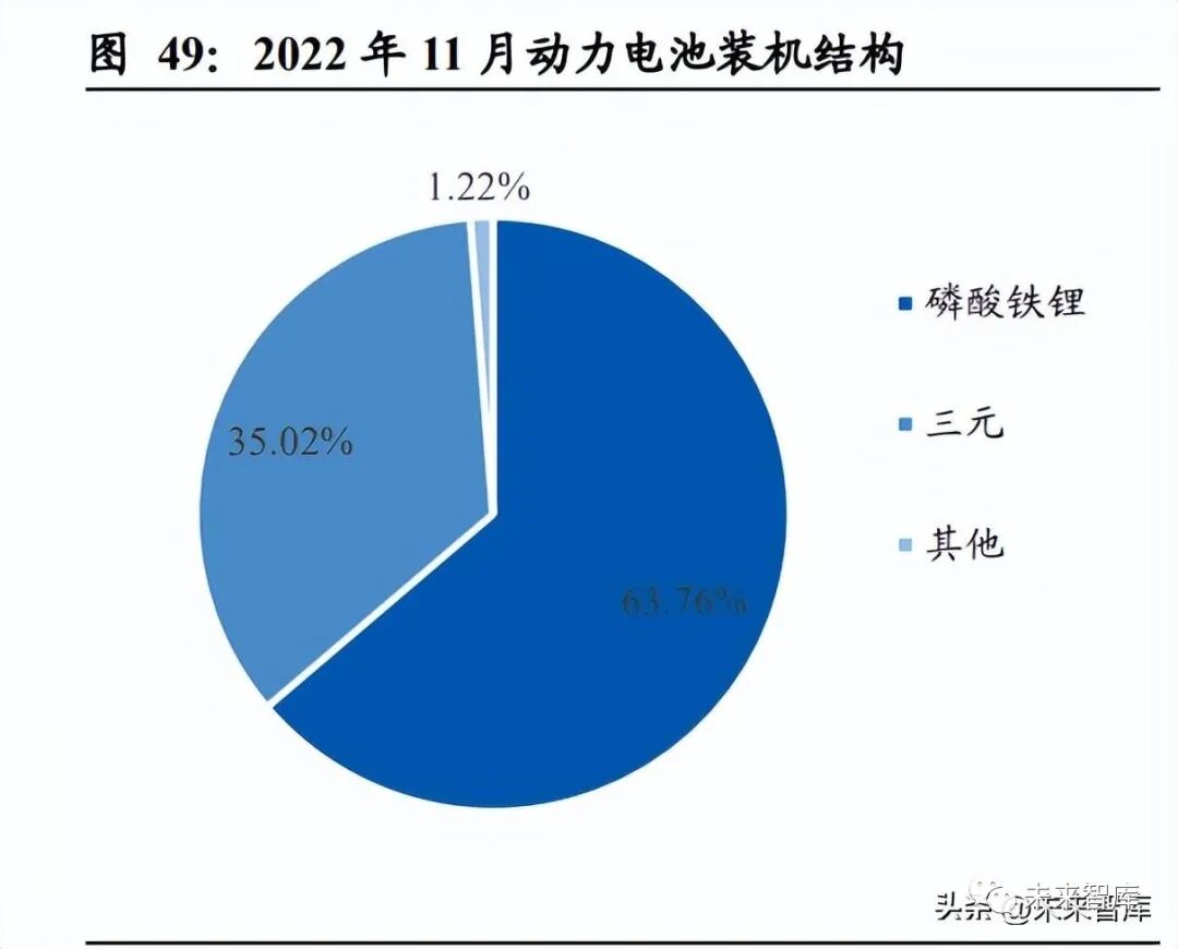 磷酸铁主要用于制造磷酸铁锂电池材料。2019 年以后补贴政策淡化能量密度和续航 指标,磷酸铁锂电池以其成本优势脱颖而出。磷酸铁受益磷酸铁锂电池需求拉动。2022 年 11 月份磷酸铁锂动力电池装机量约 17.77GWh,同比增长 87%,市场份额占 比进一步提升,达到 64%。磷矿石受环保压力影响生产受限,近年产量有所下滑。受益需求增长和供给受限,价格从年初 645 元/吨上涨 61.40%至 1041 元/吨。碳中和背景下,磷酸铁高成长性。2023 年新能源车销量有望延续高增长,此外,风 光等可再生能源高景气推动储能需求快速提升,磷酸铁高成长性。截至 2022 年 12 月,磷酸铁价格维持在 22000 元/吨。