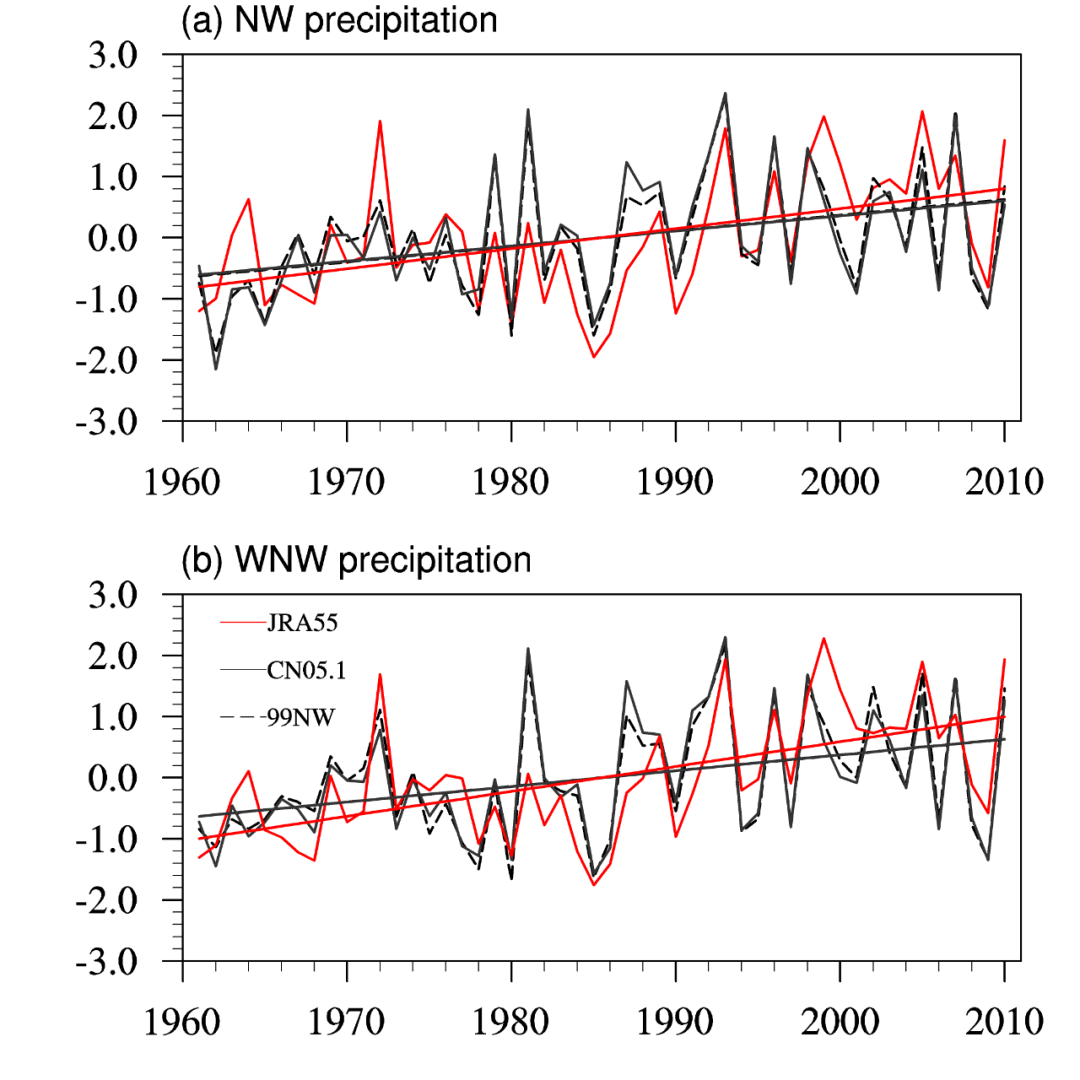 研究表明,决定新疆地区变湿、中亚北部变干的主要大气环流型,是副热带西风急流的位置南移和强度的减弱。基于气候模式的归因模拟研究表明,西风急流位置的南移是全球增暖作用的结果,而强度的减弱则受到人为气溶胶排放增多的影响,也就是说,人类活动已经显著影响到大气环流的变化,从而对包括新疆在内的中亚降水造成影响 [2-3]。