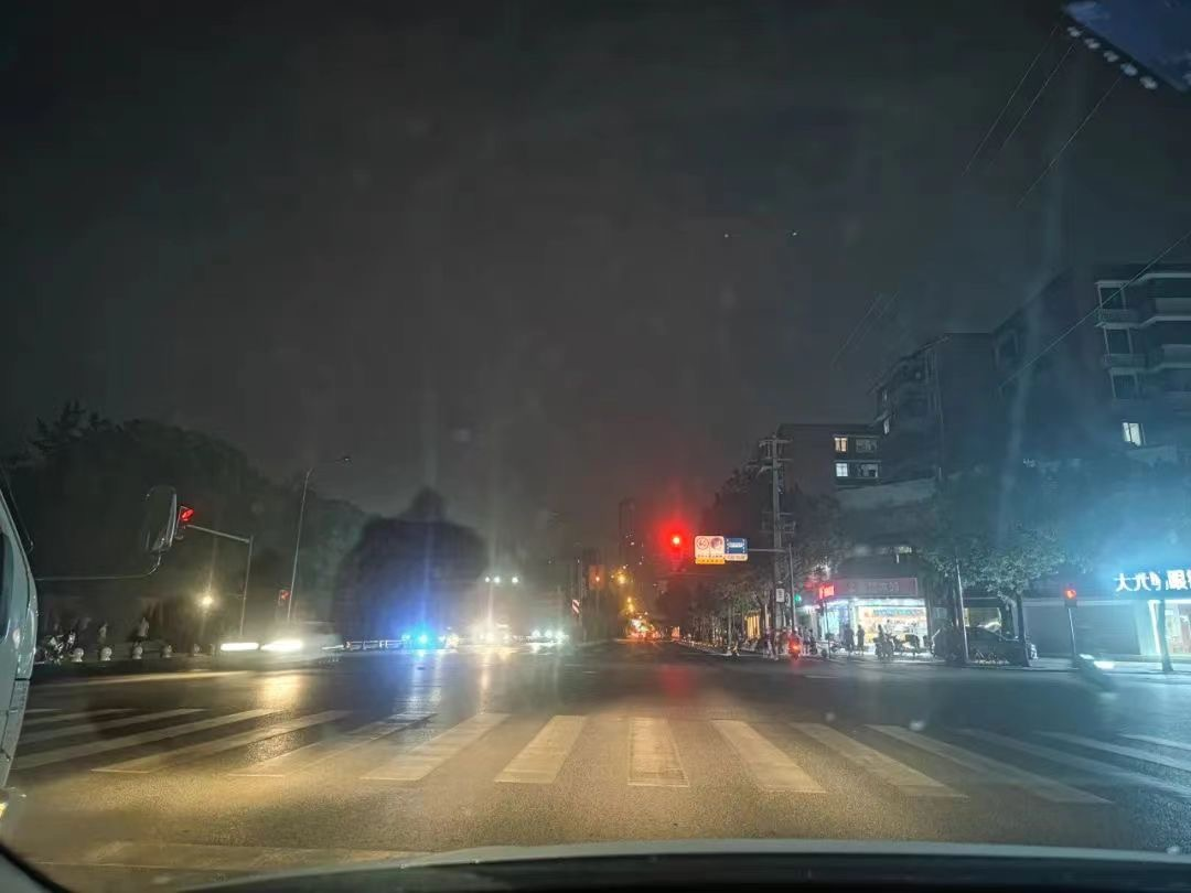 图说:8月19日晚,限电的成都街头,路灯调暗了亮度。(图源:成都市民素素)