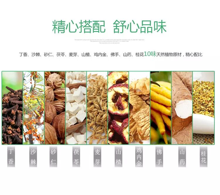 丁香调和沙棘、砂仁、茯苓等10种原料