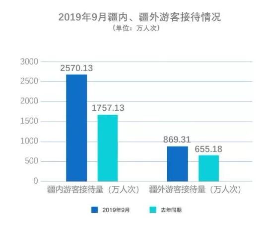 2019年1月至9月,新疆接待游客18385.84万人次,同比增长40.9%;实现旅游收入3046.38亿元,同比增长40.78%。
