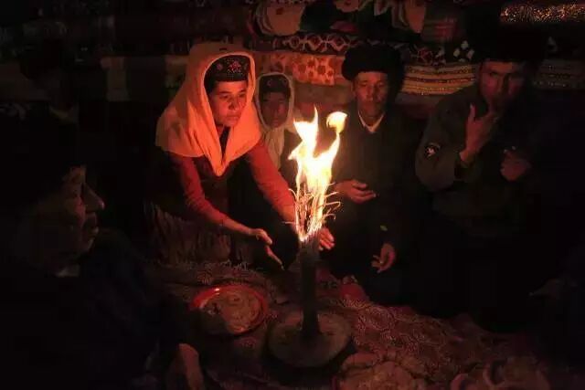 麻扎皮里克仪式结束以后,家家都在屋顶点燃火把,娃娃们在院子里燃起篝火,围着篝火做丰富多彩的游戏。此时,帕米尔的夜空被照耀的如同白昼。