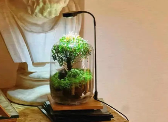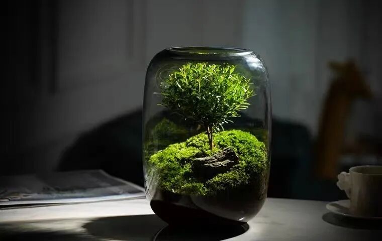 打开一看,一棵迷你的生命之树赫然呈现在眼前。它种在透明的玻璃里,在苔藓的包围下看上去沉静又有生命力。
