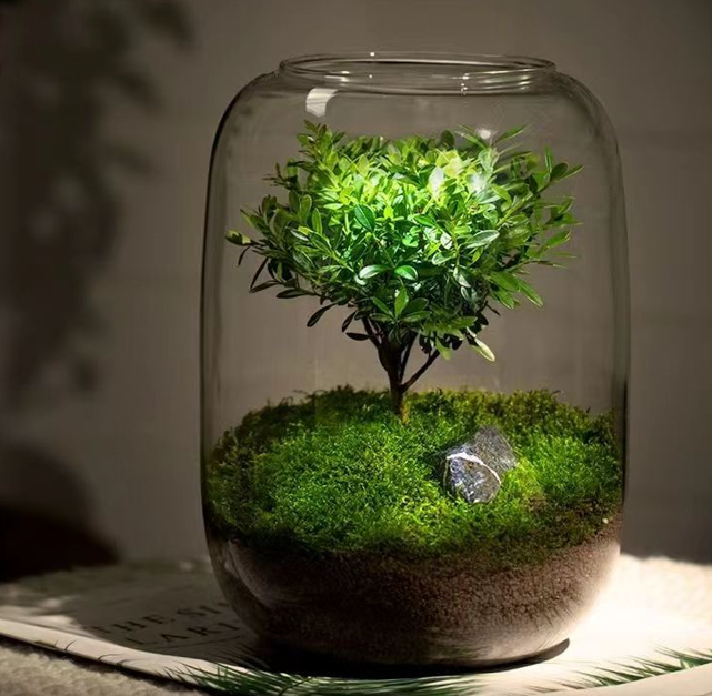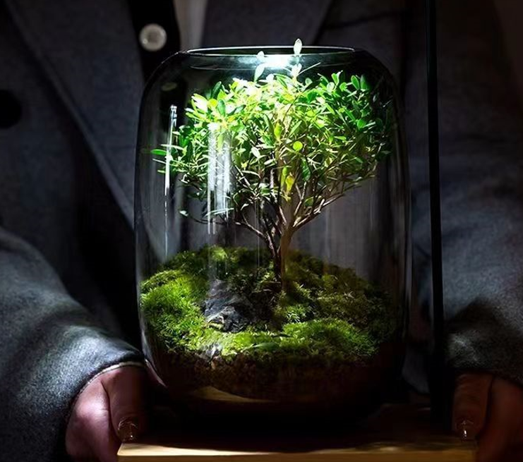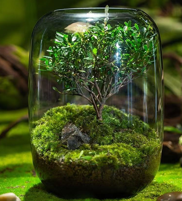 这款生命之树,由优质的小叶赤楠小苗+品质上等的白发藓,纯手工造景,将与众不同的自然风景,浓缩在这小小的透明玻璃缸中。