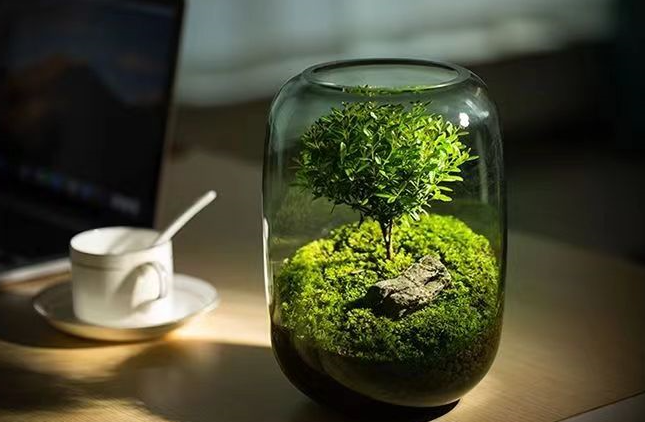 一个精巧的苔藓微景观,就像是把浓缩的大自然带在了身边,让人工作之余感受到轻松与自在的气息。