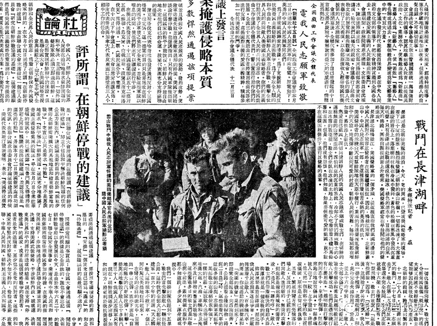 1950年12月17日《人民日报》1版刊登李庄的《战斗在长津湖》