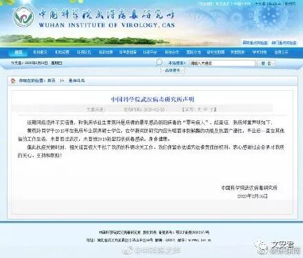 近期网络流传不实信息,称我所毕业生黄燕玲是所谓的最早感染新冠病毒的“零号病人”。经查证,我所郑重声明如下: