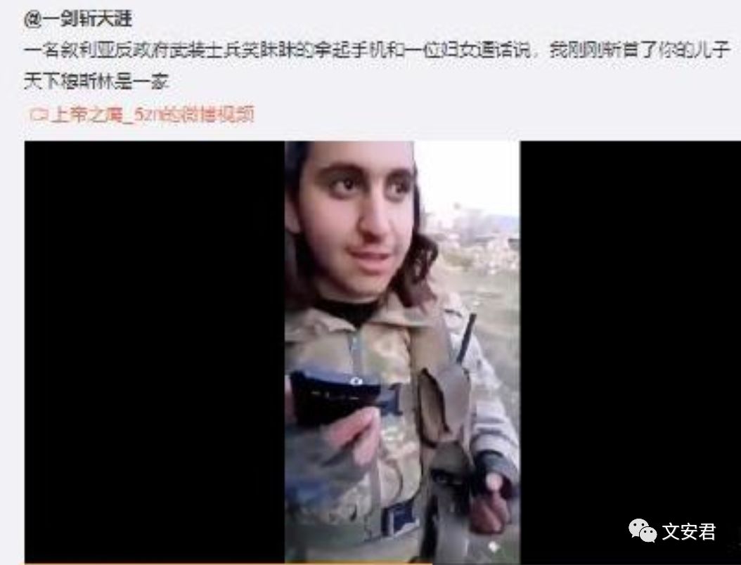 北约和美国支持的叙利亚反政府武装,给叙利亚政府军士兵的母亲打电话,笑着告诉她说。