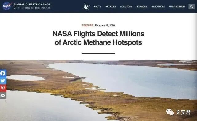 NASA消息研究人员发现了约200万个甲烷点。气候变暖导致冻土融化。冻土层中的甲烷释放量将会增加。