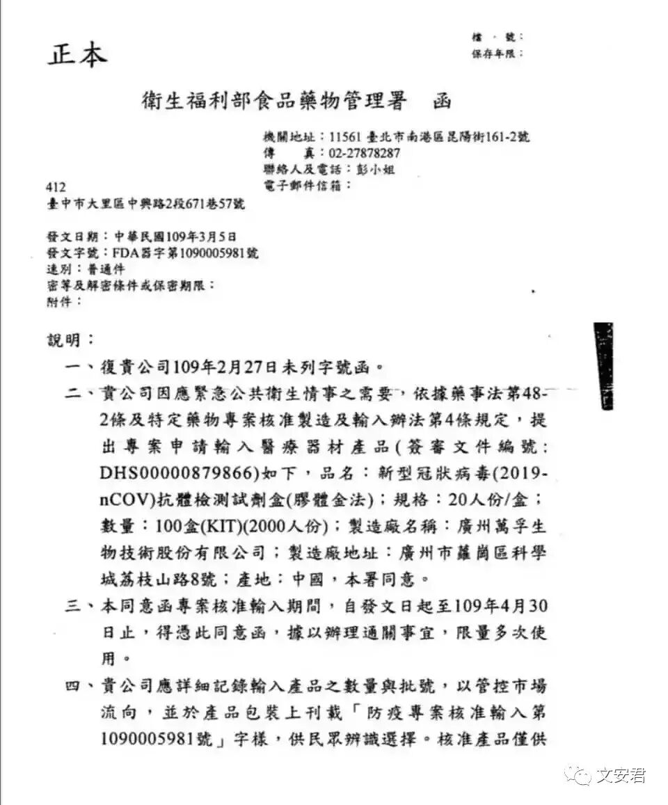 台湾自己也从大陆进口大陆早已量产的快筛试剂,光万孚生物一家公司,台湾政府就买了超过2万份。