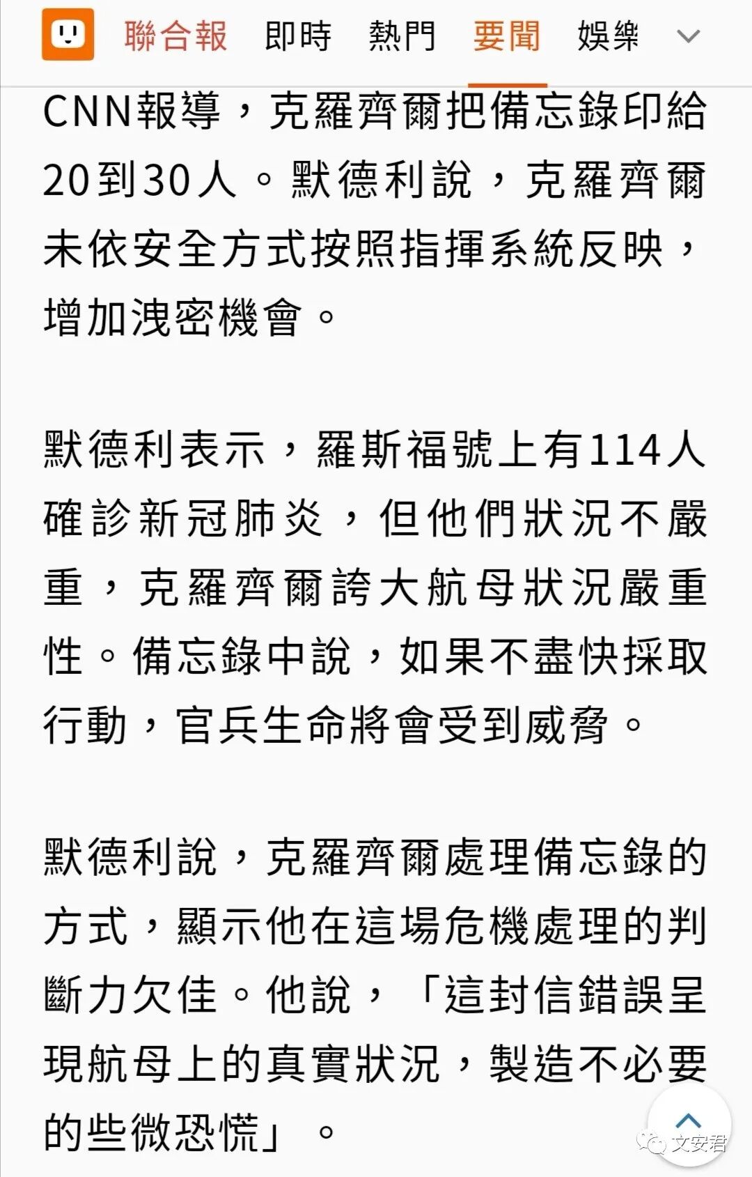美国“罗斯福”号航母舰长Brett Crozier 3月30日给太平洋舰队高层发了求救信,至今出现114起确诊病例,希望允许船上4000多名乘员尽快下船隔离,否则恐将重演“钻石公主”号悲剧。